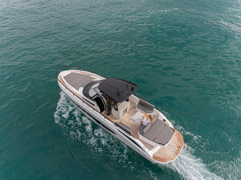 Extremely versatile, 340 Regina adapts to the personality of the owners who want to combine the elegance of a contemporary yacht with the gritty sailing experience typical of an open sport boat. The ergonomic console with all the equipment at your fi ngertips makes piloting the yacht simple, safe and dynamic. The hull is designed to achieve a low-speed glide, reducing fuel consumption and environmental impact, while also providing high performance.